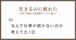 私は看護師をしていて最初の職場は5年続いたけど、その後はどの職場も3ヶ月とか長くても1年ちょっとで長続きしませんでした。
